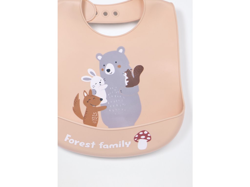 Silikonový bryndák s potiskem a nastavitelným rozepínáním na knoflíky.