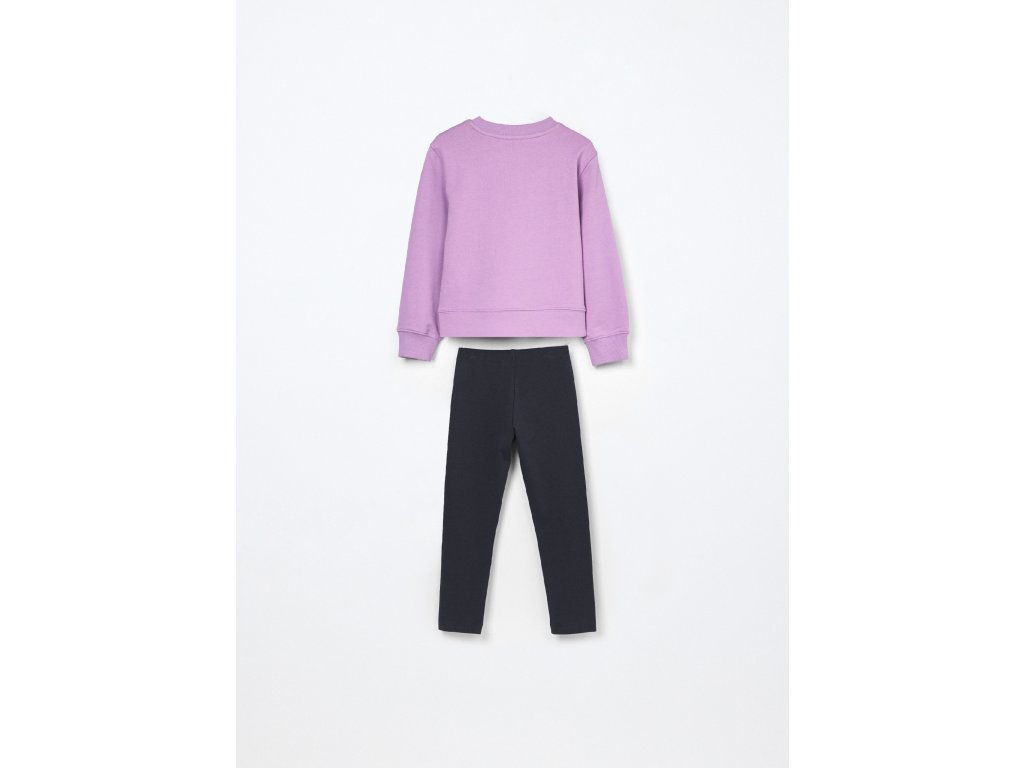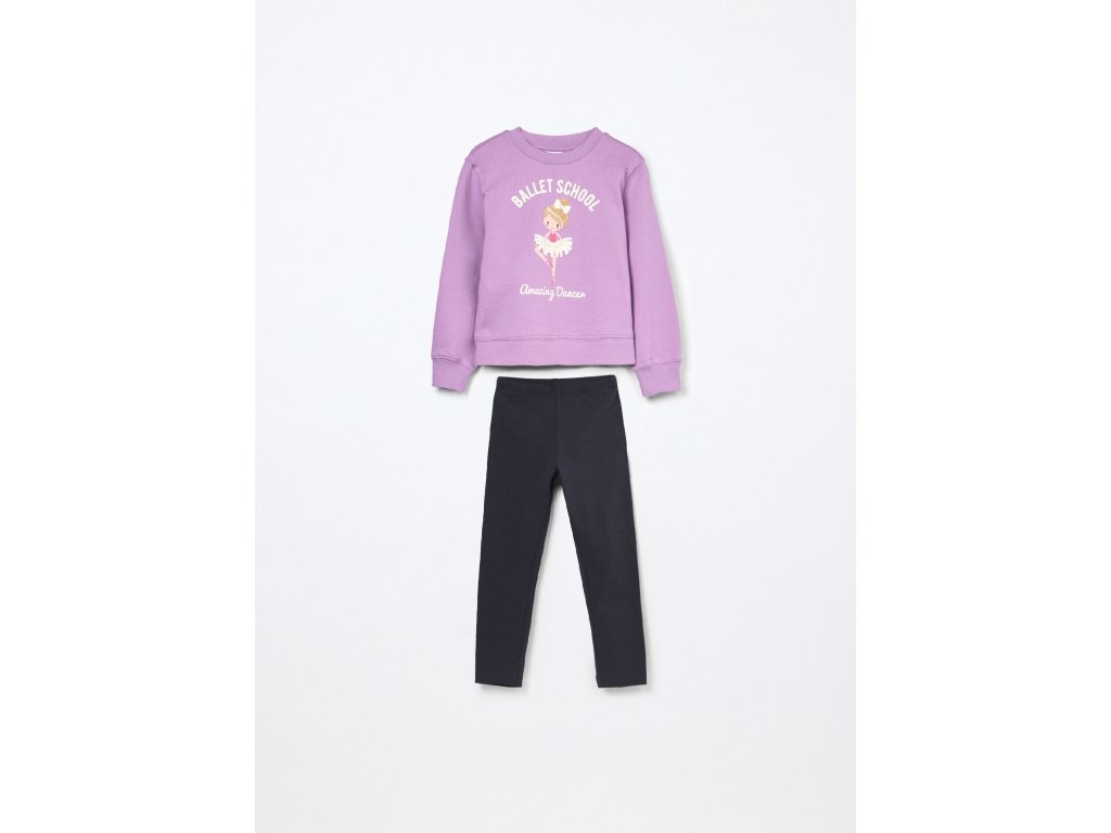 Běžecká souprava z čistě bavlněného froté sestávající z mikiny s potiskem na přední straně. Žebrovaný výstřih, spodní lem a manžety. Legíny s elastickým pasem v jednobarevném provedení.Materiály: