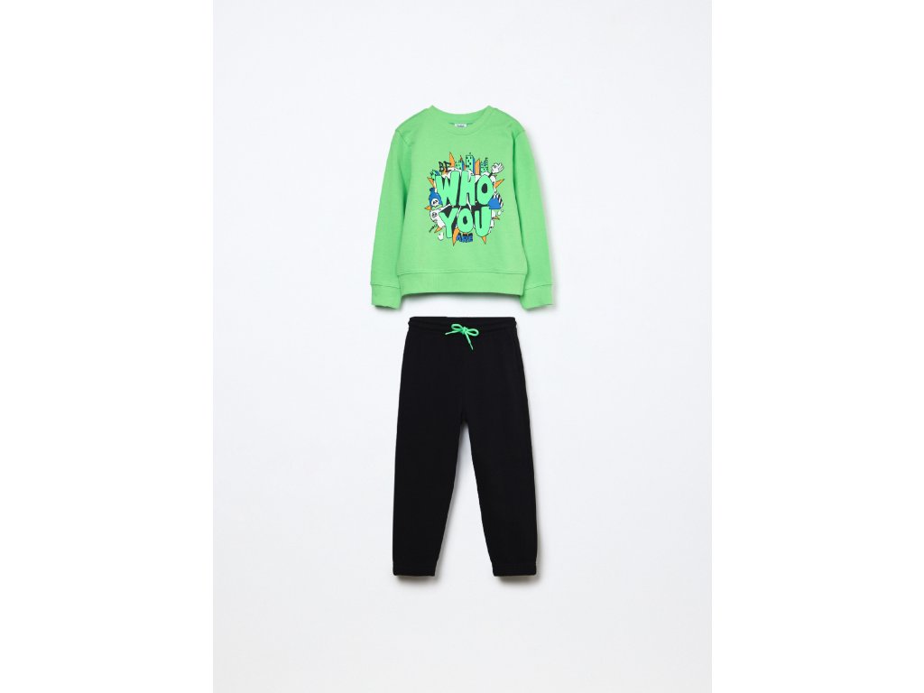 Joggingová souprava z čistě bavlněného froté sestávající z potištěného horního dílu. Žebrovaný výstřih, spodní lem a manžety. Jogger s elastickým pasem a kontrastní stahovací šňůrkou.Materiály: