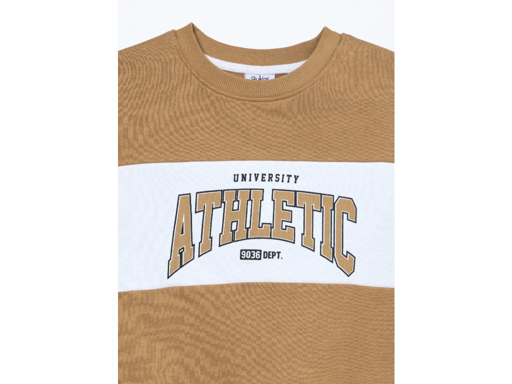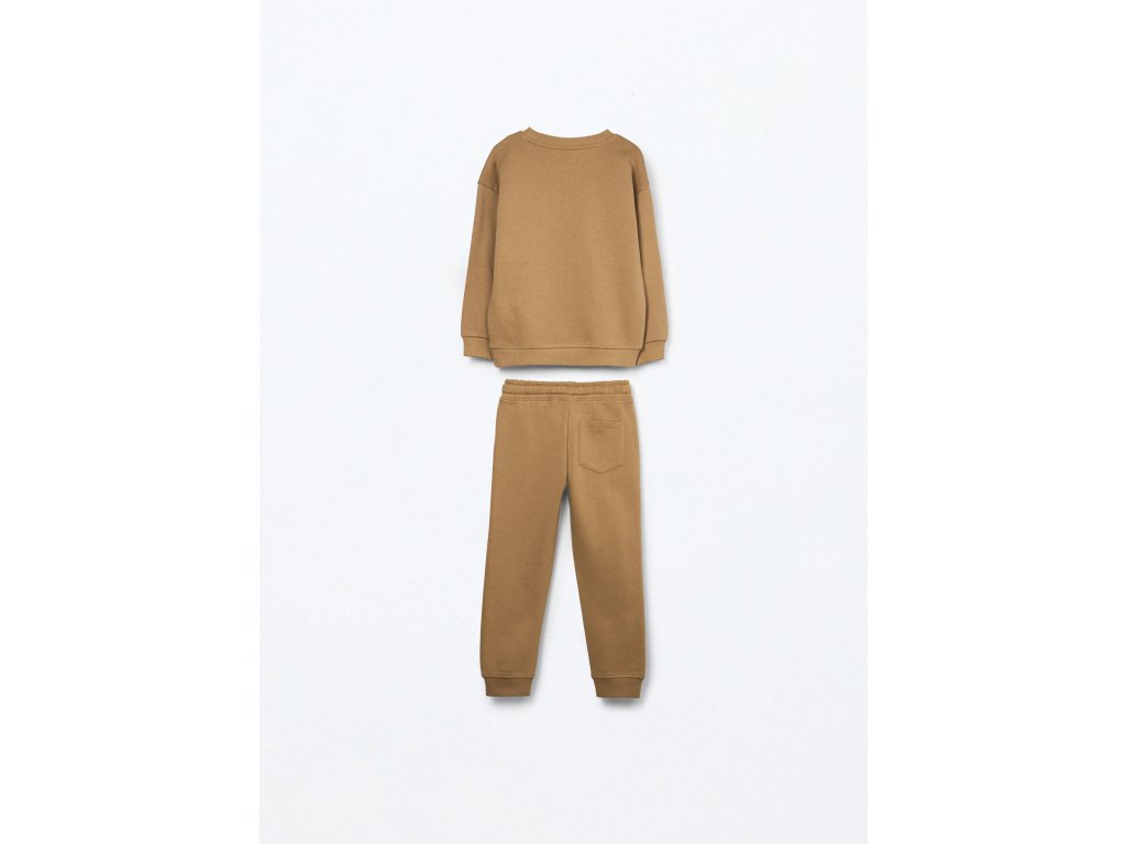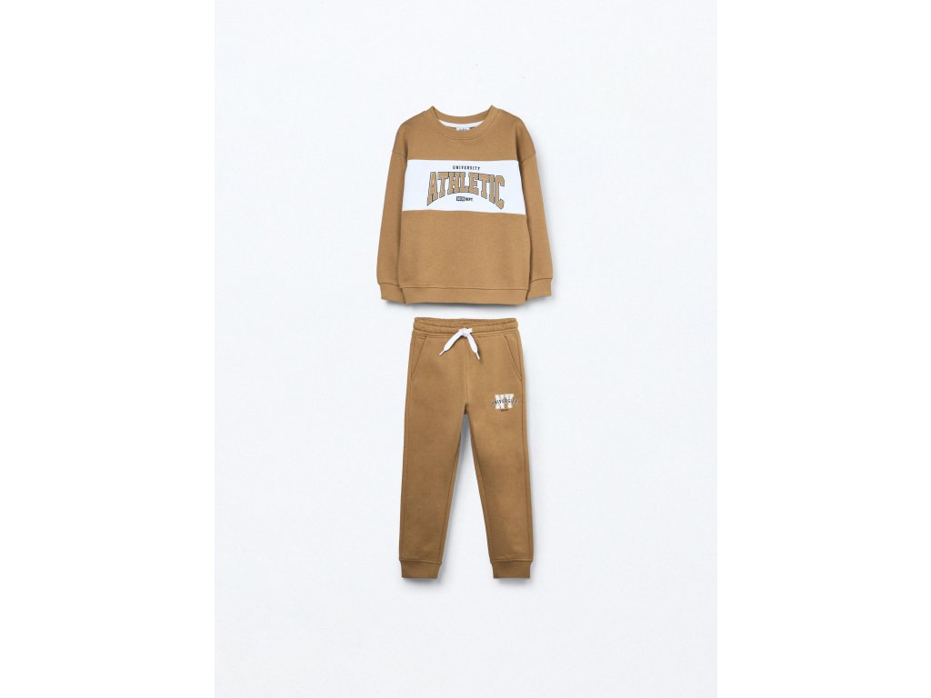 Joggingová souprava z čistě bavlněného froté. Horní díl s potiskem, žebrovaným výstřihem, spodní lem a manžety žebrované. Kalhoty s elastickým pasem a kontrastní stahovací šňůrkou. Dvě kapsy na přední straně a jedna našitá kapsa na zadní straně.