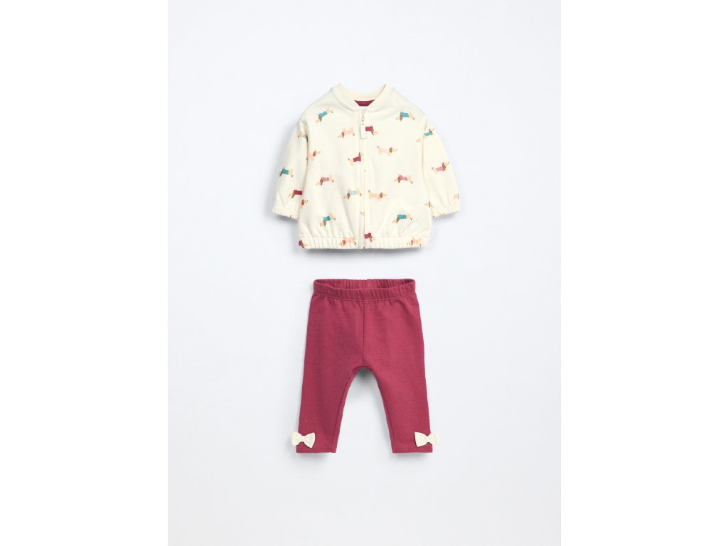 Běžecká souprava z čistě bavlněného francouzského froté sestávající z horního dílu s celoplošným potiskem. Zapínání na zip. Elastický spodní lem a manžety. Legíny s pružným pasem a mašlí na lemu.MATERIÁL: 100% BAVLNA