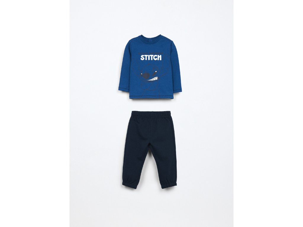 Joggingová souprava z čistě bavlněného froté. Kulatý žebrovaný výstřih, potisk Stitch na přední straně. Spodní lem a manžety s výšivkou. Zapínání na knoflíky na zadní straně. Kalhoty s elastickým pasem a manžetami.