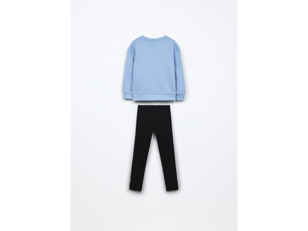 Strečová joggingová souprava z francouzského froté. Top s potiskem Disney na přední straně. Žebrovaný výstřih, spodní lem a manžety. Legíny s elastickým pasem a potiskem.