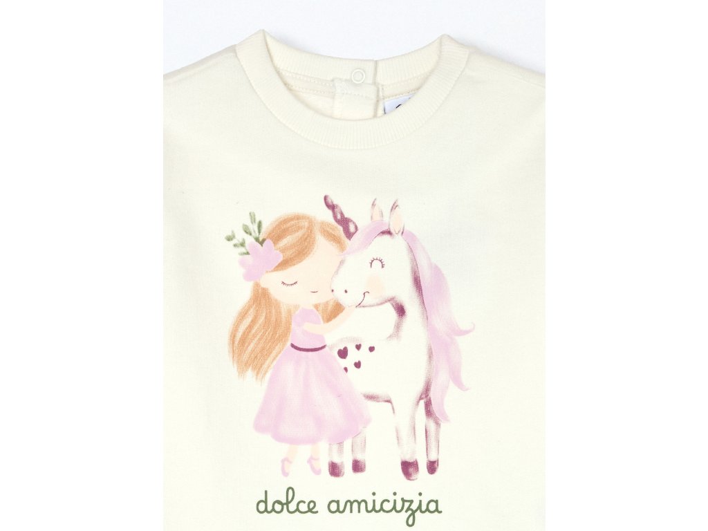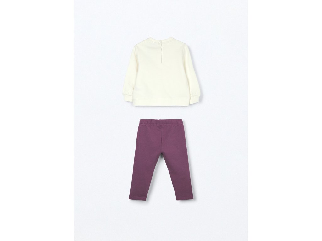 Joggingová souprava z čistého bavlněného fleecu sestávající z horního dílu s potiskem na přední straně. Žebrovaný výstřih a manžety. Zapínání na knoflíky na zádech. Legíny s elastickým pasem, jednobarevné.MATERIÁL: 100% BAVLNA