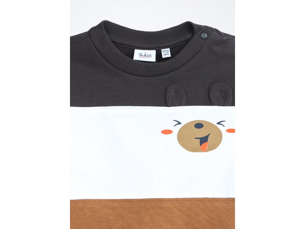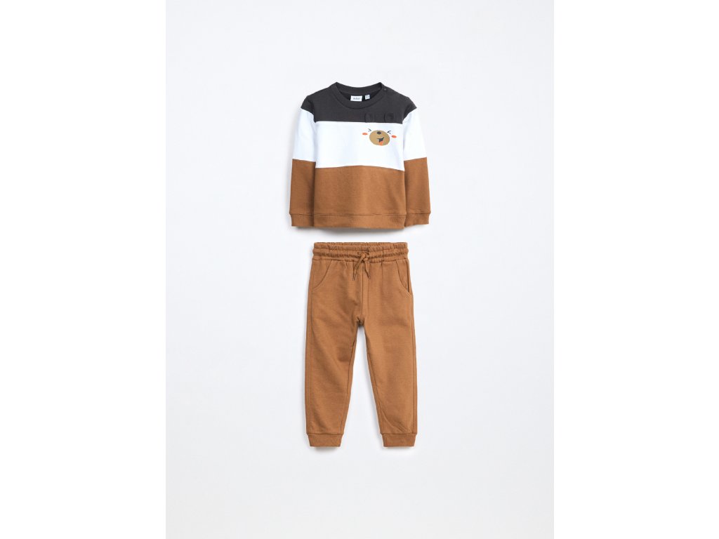 Joggingová souprava z čistého bavlněného fleecu sestávající z horního dílu s pruhovaným vzorem. Žebrovaný výstřih, spodní lem a manžety. Potisk a aplikace. Zapínání na patenkty na rameni. Kalhoty s elastickým pasem a šňůrkou na stažení. Dvě přední kapsy. Žebrované manžety.