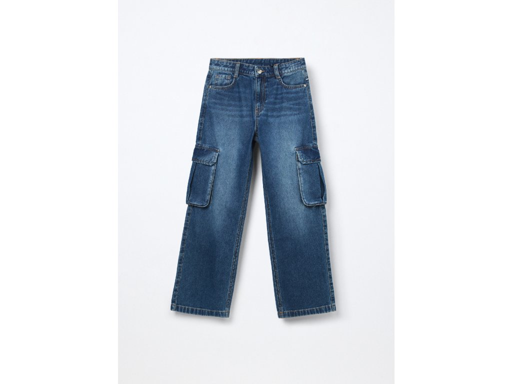 Široké kalhoty cargo z čistě bavlněného denimu. Zapínání na knoflík a zip. Dvě kapsy + náprsní kapsa na přední straně. Dvě boční kapsy s klopou a dvě nakládané kapsy na zadní straně.MATERIÁL: 100% BAVLNA