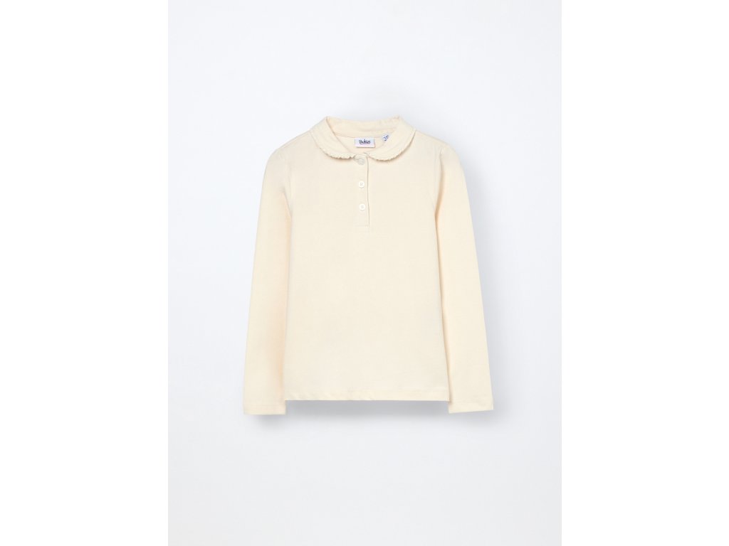 Dívčí elastické bavlněné polo tričko s dlouhými rukávy