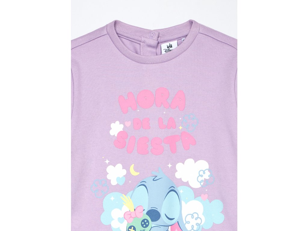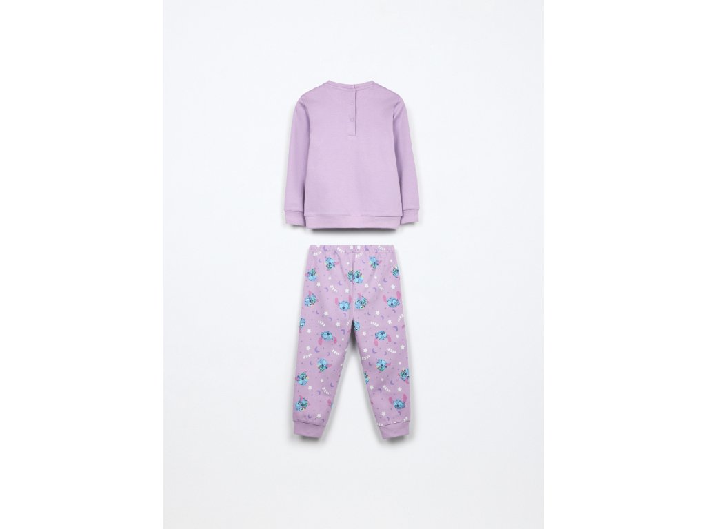 Dlouhá pyžamová souprava z čisté bavlny. Vrchní díl s kulatým výstřihem a zapínáním na patentky na zádech. Na přední straně potisk Disney. Kalhoty s celoplošným potiskem a pružným pasem.
