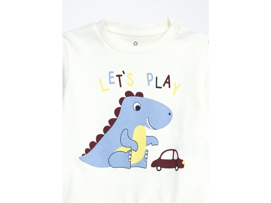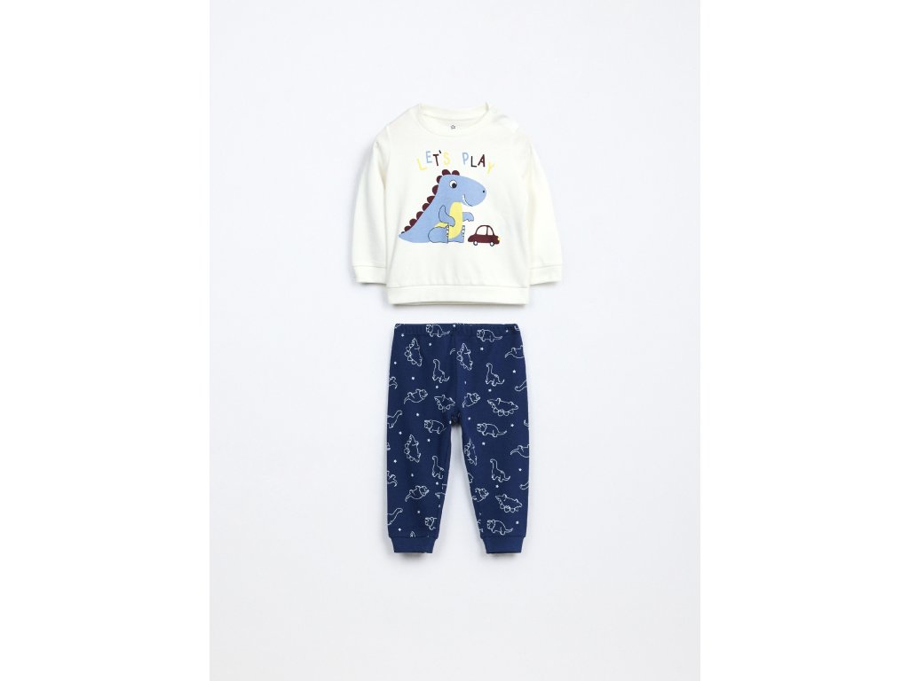 Dlouhá pyžamová souprava z čisté bavlny interlock sestávající z vrchního dílu s výstřihem a potiskem na přední straně. Zapínání na knoflíky na rameni. Kalhoty s pružným pasem a celoplošným potiskem.MATERIÁL: 100% BAVLNA