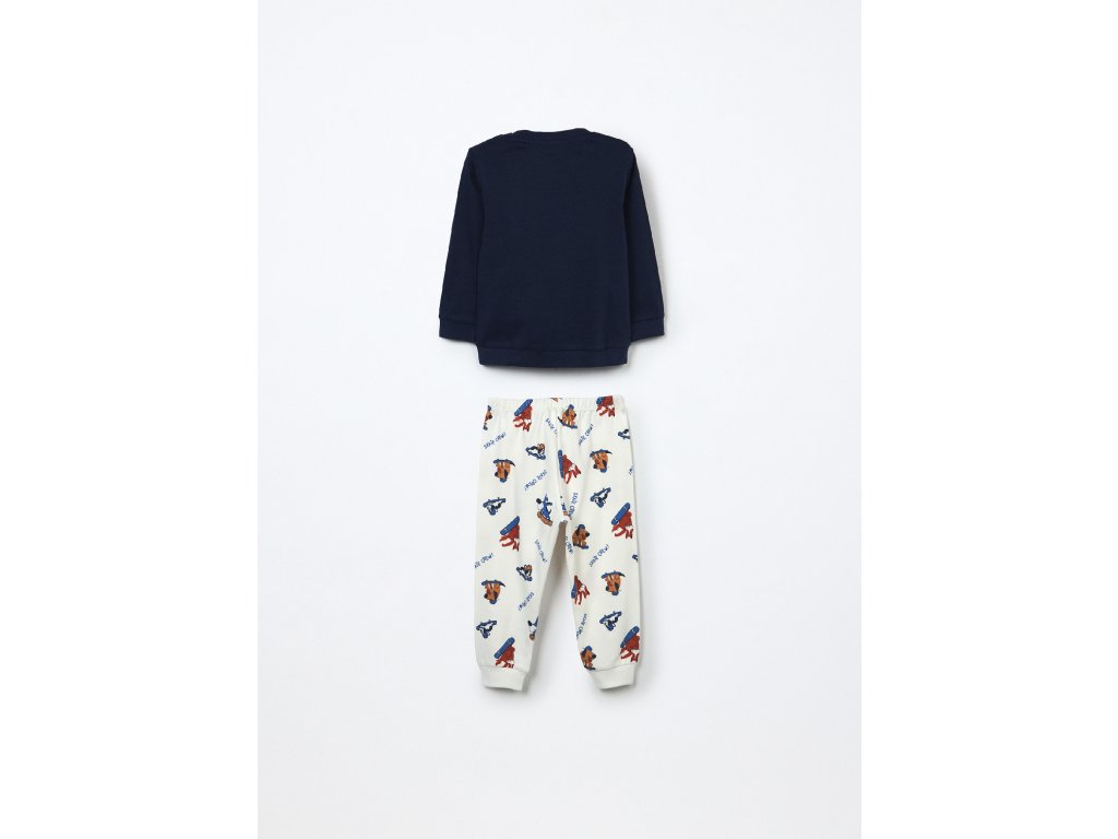 Dlouhá pyžamová souprava z čisté bavlny interlock sestávající z horního dílu s výstřihem a potiskem na přední straně a zapínáním na knoflíky na rameni. Kalhoty s pružným pasem a celoplošným potiskem.MATERIÁL: 100% BAVLNA